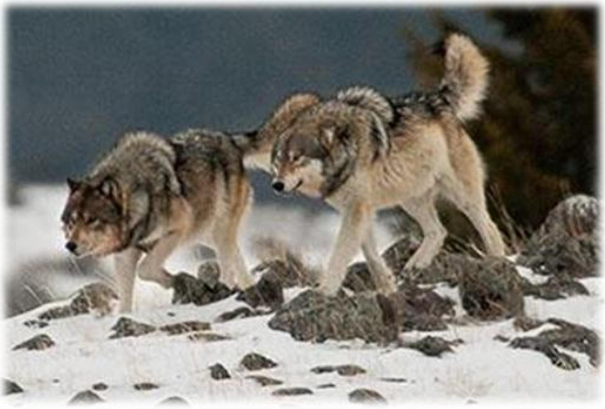 The gray wolf or canis lupus, also called the timber wolf, is considered a pure wolf as distinct from wolf-coyote hybrids or canis latrans. Wolves are pack animals that live in small groupings formed mostly by family members. The alpha male and alpha female are the only members to have pups and the entire pack raises the pups. Occasionally, a second female will have a litter "with permission" of the alpha female. More than half of newborn wolf pups will die by 6 months of age.