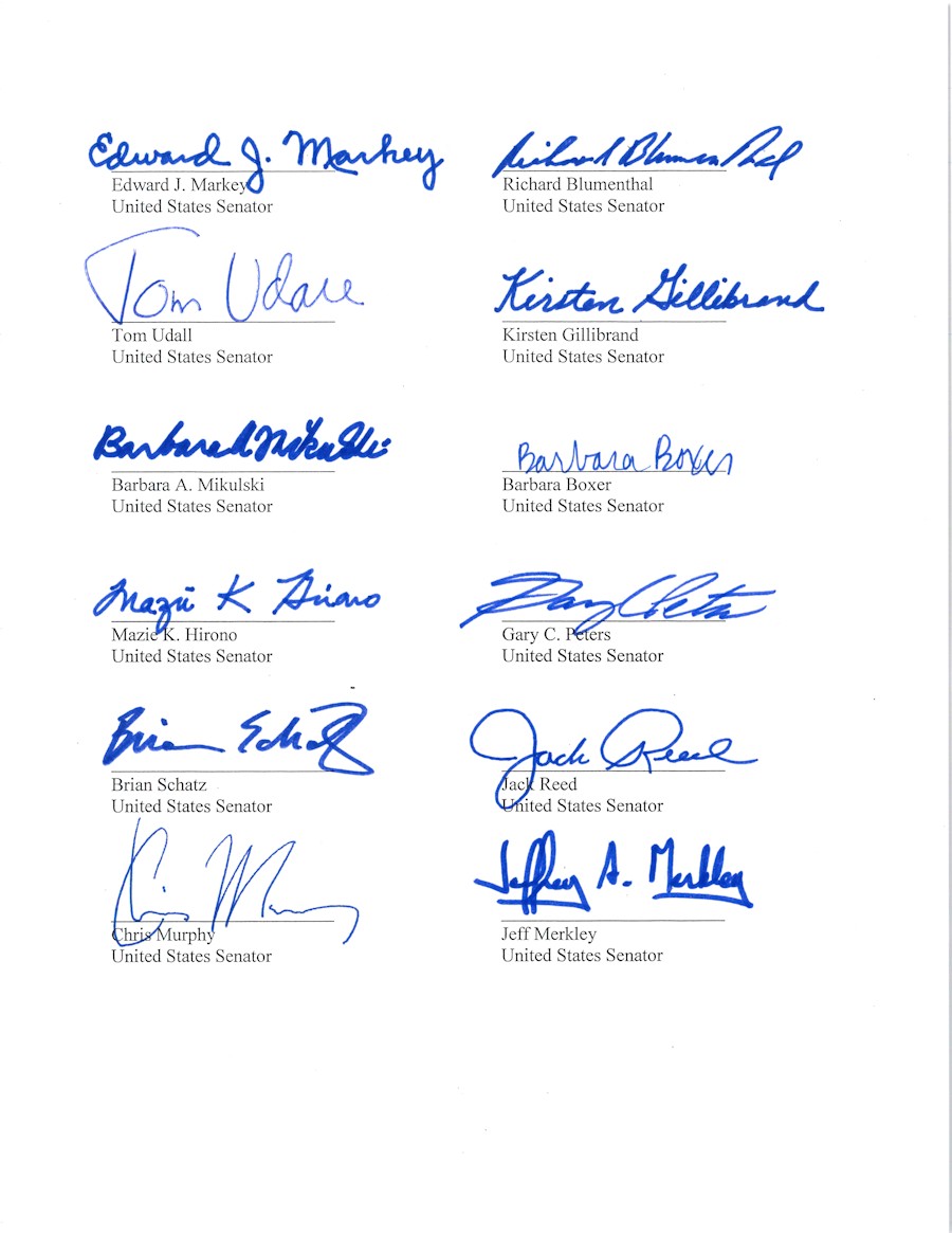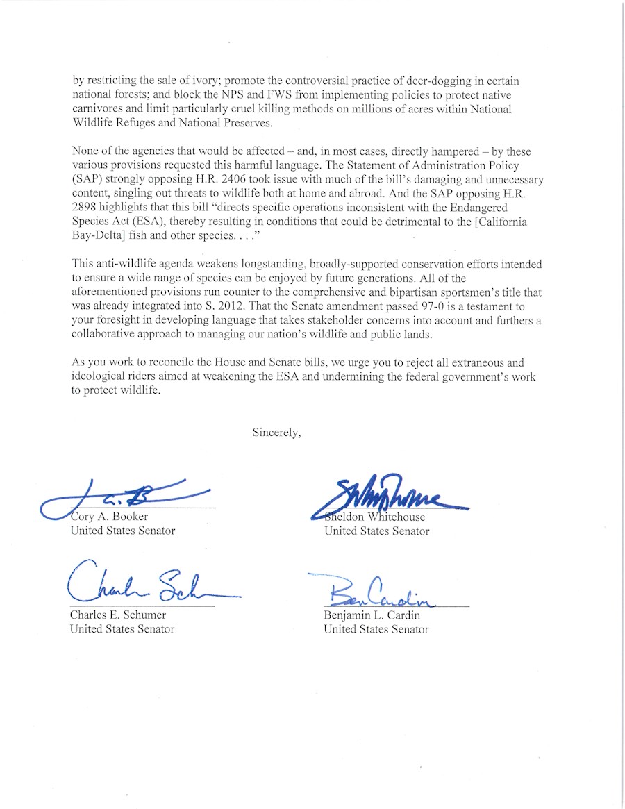 20 US Senators sign a letter asking that the Energy Modernization Act of 2016 will not include anti-wildlife provisions