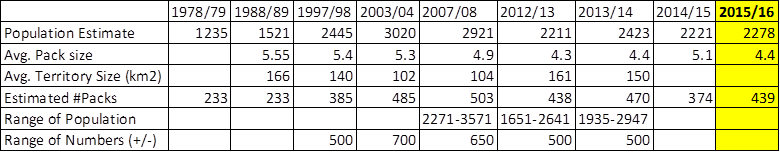 (St. Paul, Minn) – Today the Minnesota Department of Natural Resources released its 2015-2016 wolf population estimates, reporting 439 wolf packs (2+ wolves equal a pack) and 2,278 wolves from the past winter. These results indicate Minnesota’s wolf population has not yet even recovered since the wolf trophy hunts of 2012-2014. The current population is below the 1998 estimates.