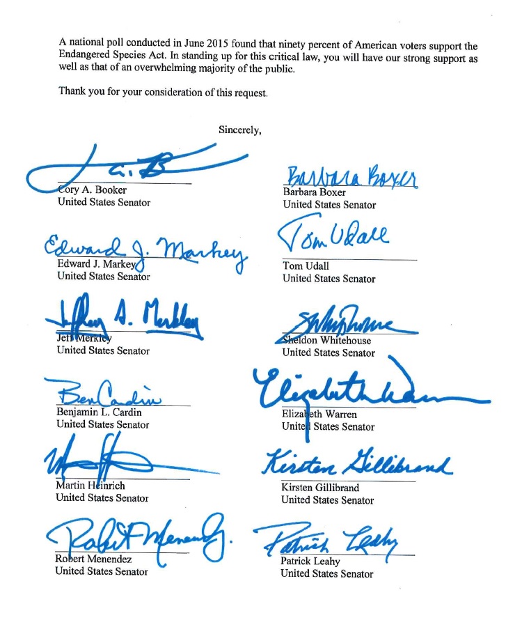 25 US Senators Urge President Obama to Protect Endangered Species Act