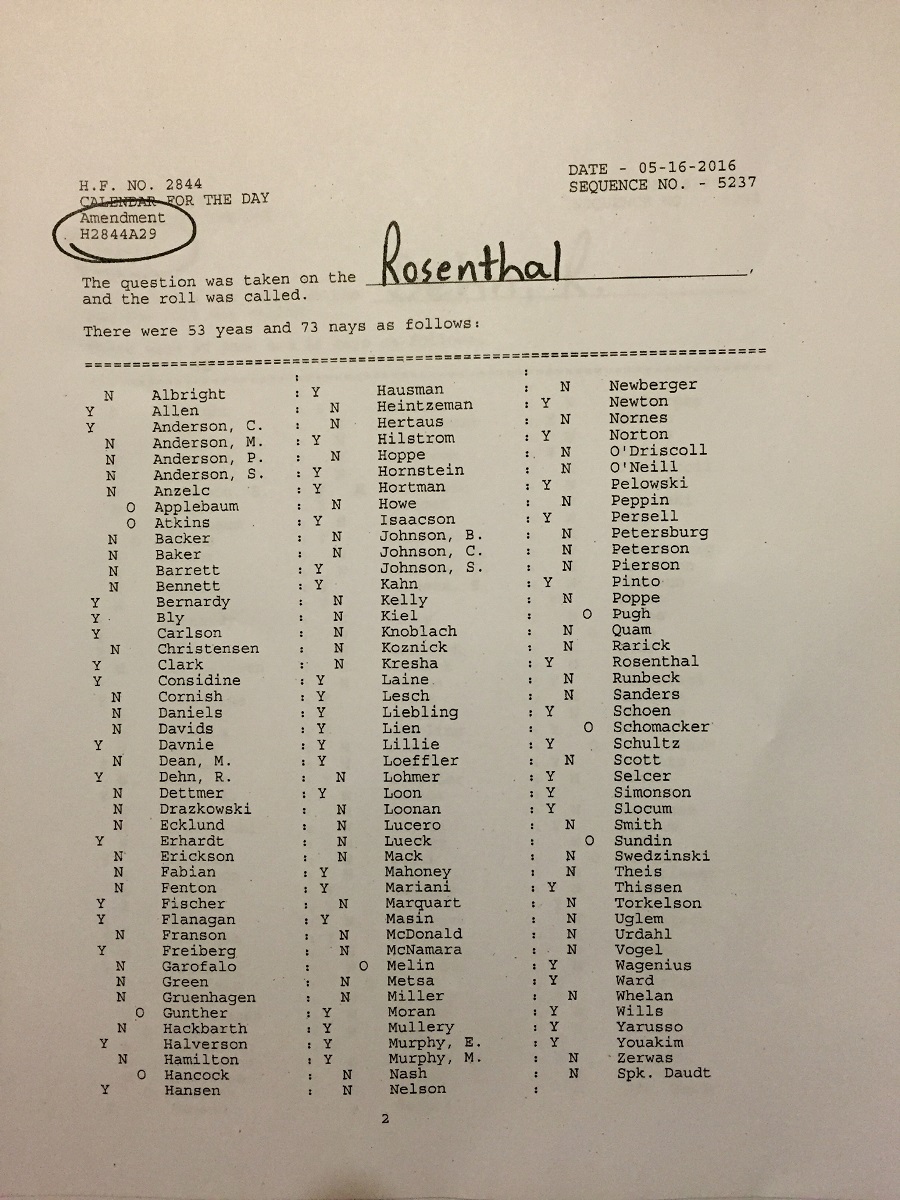 · A29 (Rosenthal) Repeals wolf hunt failed 53 – 73