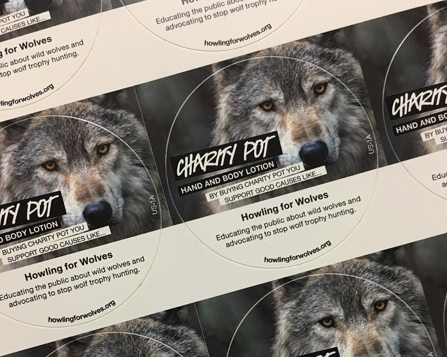 Today, we have great news. We are reaching new supporters in a big way. LUSH, an international natural bath and beauty products company, features Howling For Wolves for their charity pot, which is sold throughout the world. We are the grateful recipients of two large LUSH grants that supported our Wolf Day activities in 2014 and in 2015. We are proud to be LUSH’s featured organization on the charity pot, which will put our name in hundreds of thousands of hands throughout the world.