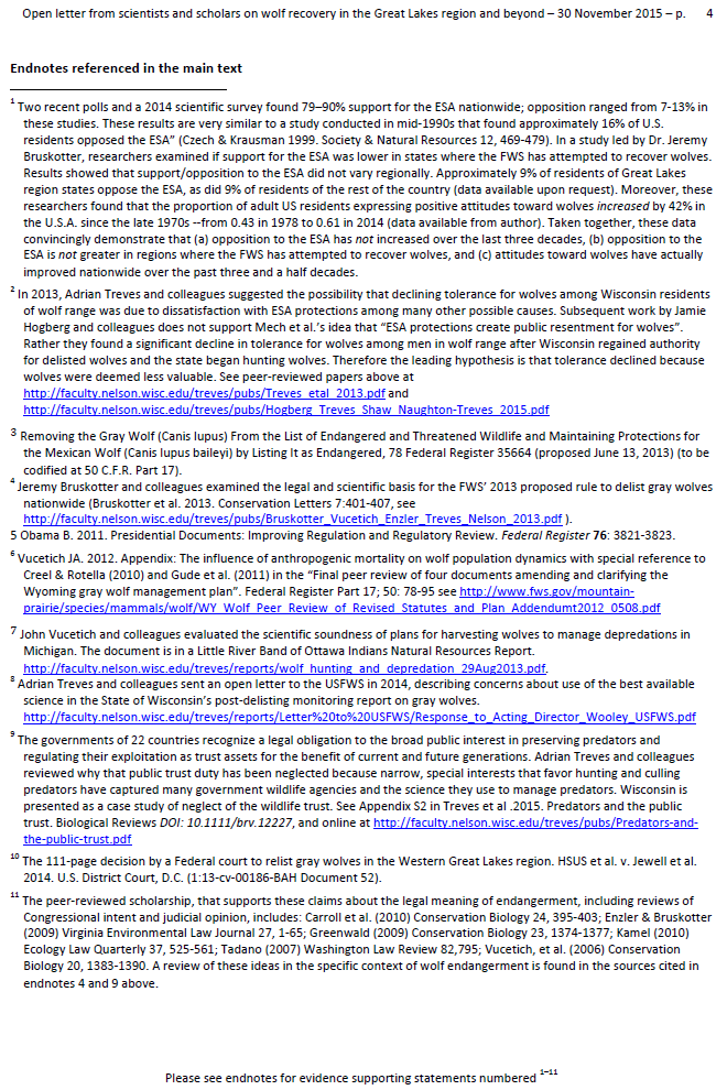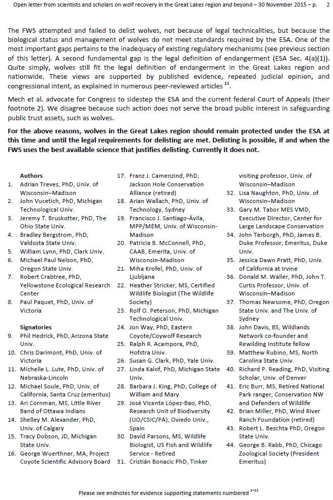 Updated: 70 scientists submit an open letter to government in opposition of delisting Great Lakes wolves from the Endangered Species Act